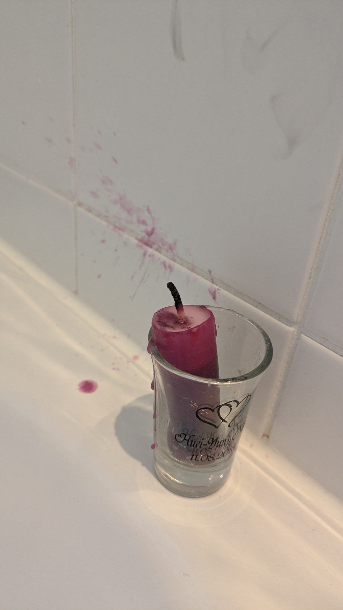 Viel zu doll die Kerze ausgepustet und dabei das Wachs an der Wand verteilt.